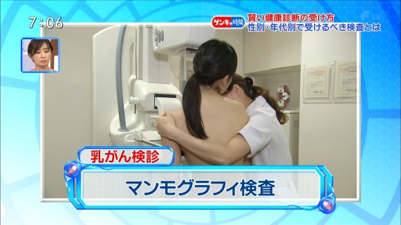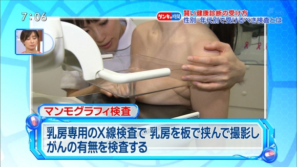 健康カプセル!ゲンキの時間の乳がん検診で乳首晒したおっぱいが映る