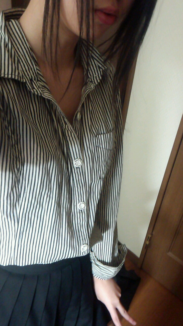 制服脱ぎながらエッチなアングルで部位を写メ撮り