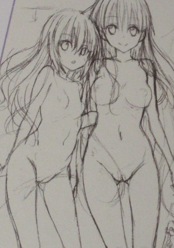 下書きラフの時点ではスジあり・・・