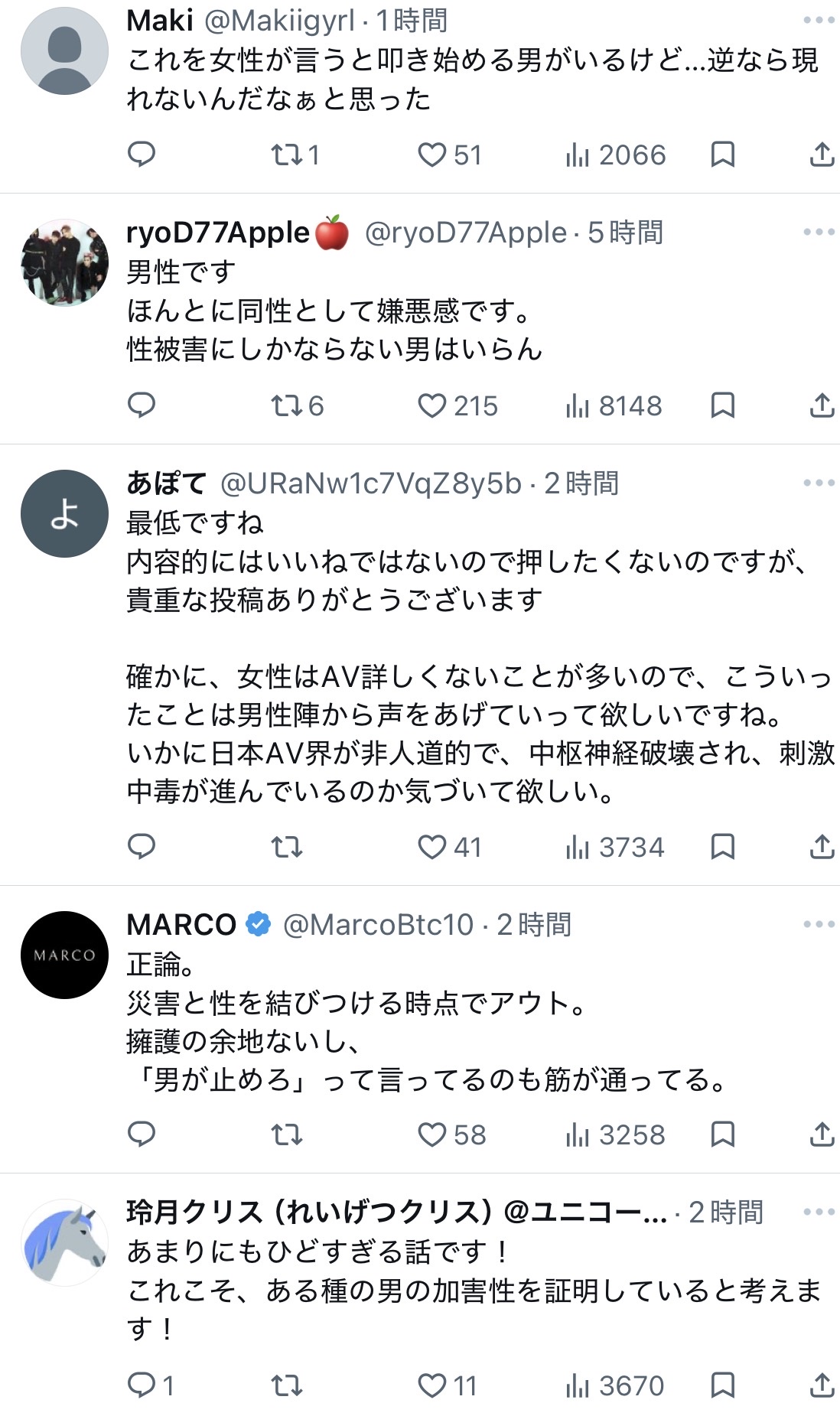 レイプAVで抜いてる人がいると思うと、俺は怖いよ
