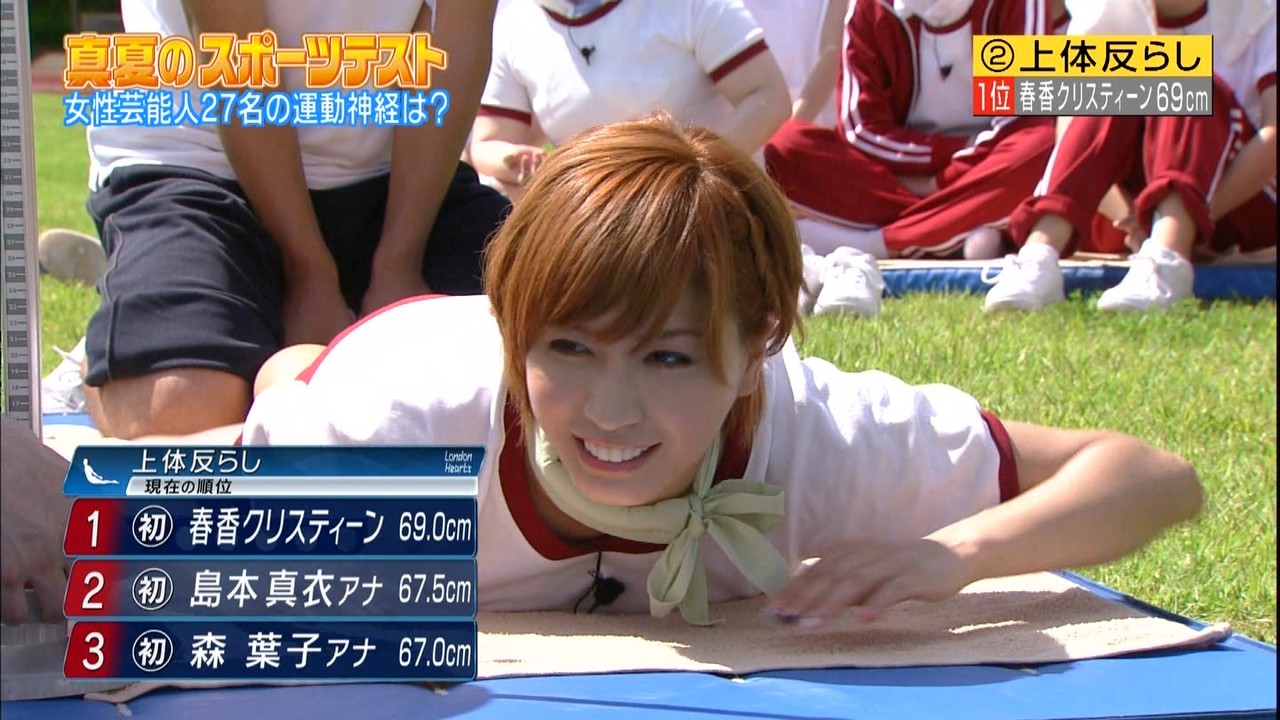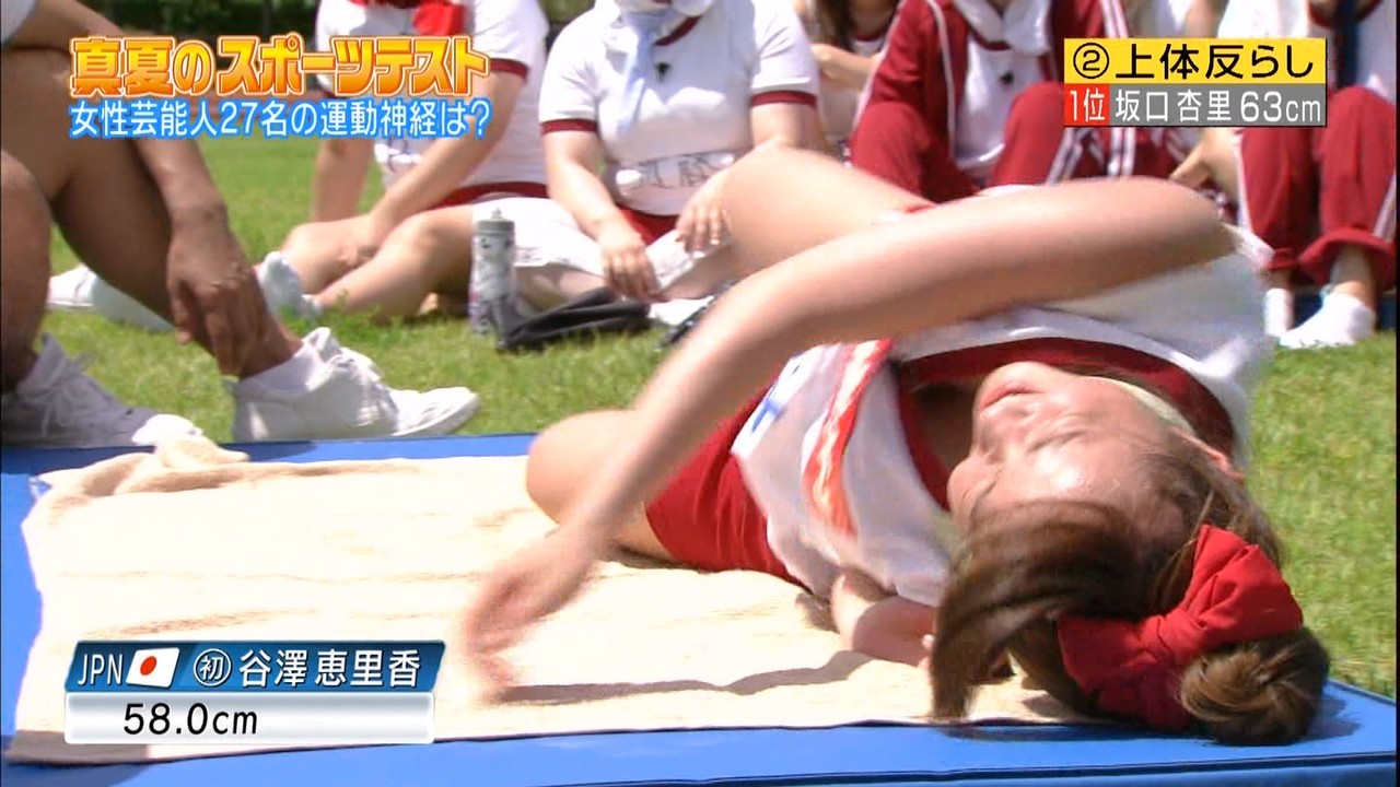 ロンハー恒例、女性芸能人スポーツテストの上体反らしおっぱい