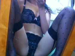 黒ガーターの下着姿の鏡撮り。パンティ取って過激なマンスジ撮りあり